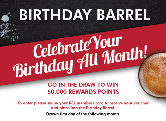 Enter by swiping your RSL members card to receive your voucher and place into the Birthday Barrel.